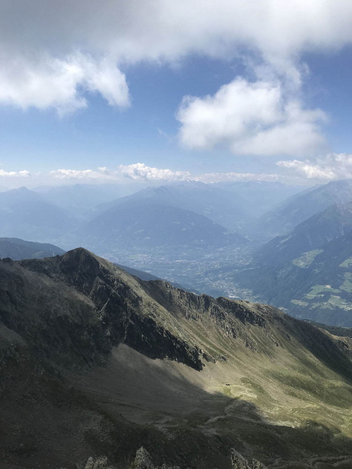 Das ist die Ausicht vom Ifingergipfel in den Meraner Alpen